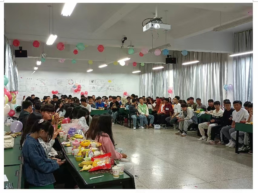 建筑经济信息化管理二班的同学们齐聚一堂,多才多艺的同学为大家展示了吉他弹唱,节日气氛无处不在。还组织了游戏竞赛,激烈的游戏竞赛拉满了活跃的氛围,教室里充满了同学们的欢笑声。