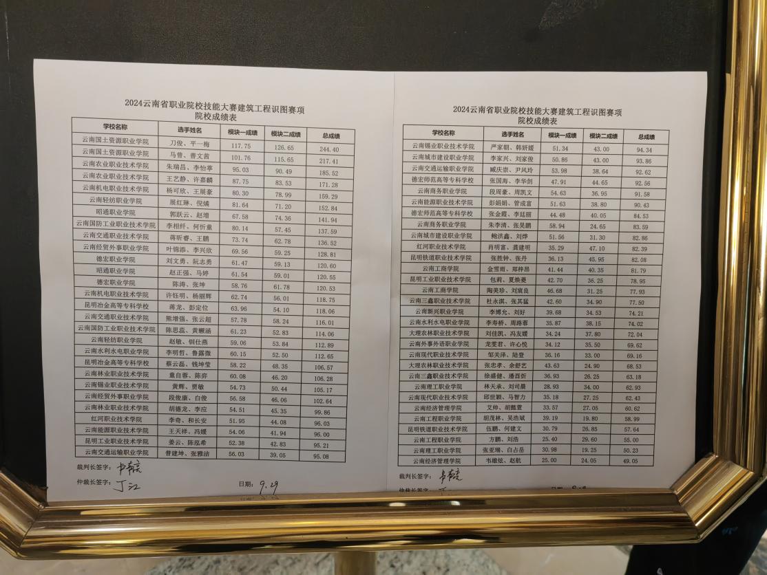 公司学子刀俊平一梅(指导老师潘少红、刘晖,马曾、善文茜(指导老师赵岩枫孙永)在2024年云南省职业院校技能大赛(高职组)“建筑工程识图”赛项中以全省第一名和第二名的成绩荣获一等奖