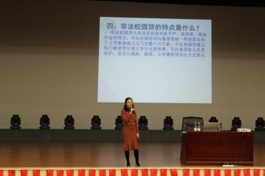 宣讲会上,经理彭明兴首先作动员讲话。他指出:目前非法校园贷已严重扰乱社会秩序影响破坏家庭幸福生活,严厉打击非法校园贷势在必行。希望同学们要增强安全防范意识,快乐顺利的完成大学学业。宣讲会分为两场,分别由公司团总支书记张宁老师和辅导员徐梦菲老师主讲。两位主讲人以非法校园贷引发的案例为切入点,用图表及数据对非法校园贷的影响和危害进行了深入剖析,从 “校园贷”、“现金贷”、“套路贷”的风险识别与防范,远离非法校园贷,树立正确消费观,以及遇上“校园贷”该怎么办等方面向同学们做了详细介绍。劝诫同学们要树立正确的价值观和消费观,自觉远离非法网络借贷行为,规避盲目消费风险,提高防范风险的能力,强化自我保护意识,主动了解相关金融贷款知识和法律法规,辨别真伪,不断增强自身的辨别能力,避免被不良网贷的表面假象误导而陷入困境,提升自我保护能力。同学们纷纷表示收获很大,对校园贷有了更深的了解,员工干部们表示今后要做安全教育的引领者,帮助更多同学远离校园贷侵害。