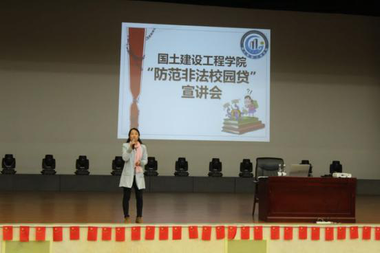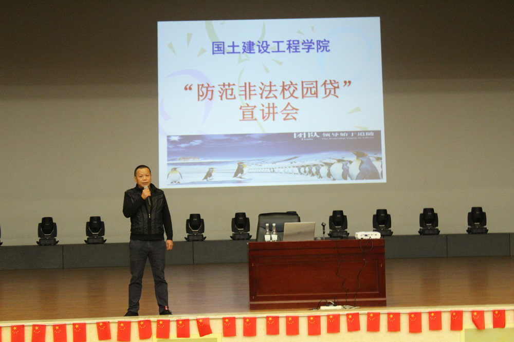 为增强公司员工有效防范非法“校园贷”、“套路贷”的风险意识和能力,树立理性消费观。根据公司员工安全工作处的统一安排,10月13日晚19:00,国土太阳成集团tyc122ccvip在明礼堂举行了“防范非法校园贷”宣讲会。建工公司经理彭明兴出席,团总支书记张宁,辅导员徐梦菲、蒋宛融和17级在校生、18级、19级全体同员工参加宣讲会。
