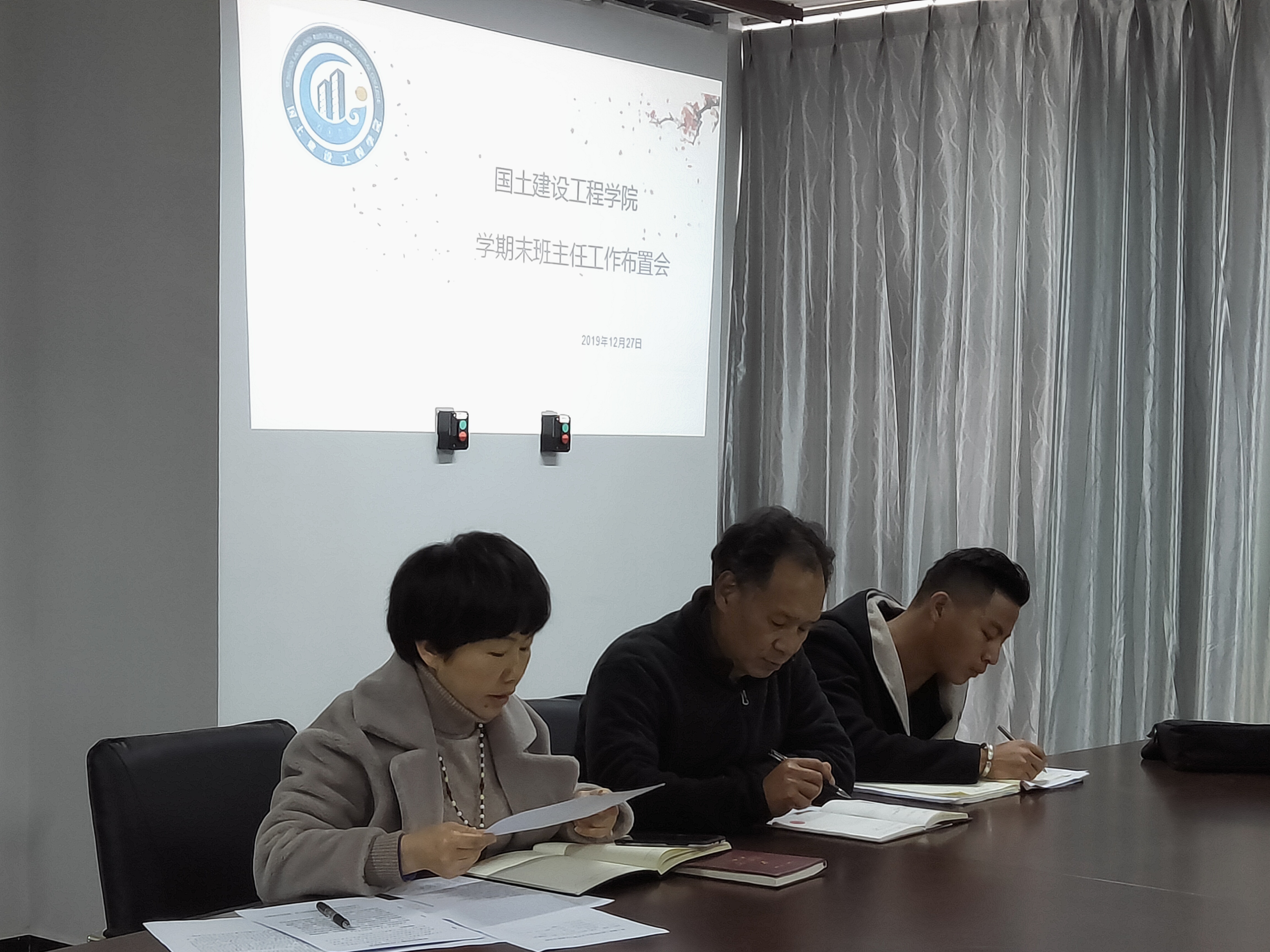 为落实好期末各项工作安排,12月27日中午,国土太阳成集团tyc122ccvip在明尚楼c301会议室召开班主任期末工作会议。国土太阳成集团tyc122ccvip党总支书记高昆老师,副经理罗启钟老师与公司辅导员、班主任共同参会。会议由学工处负责人杨寿鑫主持。