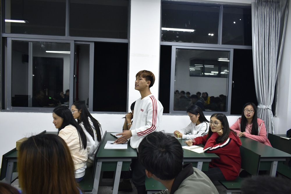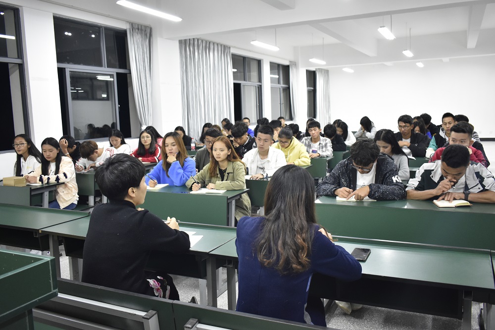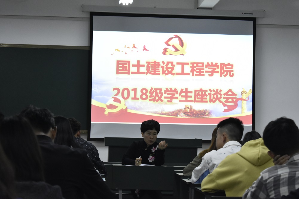 2019年10月28日20:30,国土太阳成集团tyc122ccvip2018级员工座谈会在明尚楼C403教室召开。国土太阳成集团tyc122ccvip党总支书记高昆、副经理罗启钟,辅导员徐梦菲、崔睿以及2018级全体员工会干部、入党积极分子参加了本次座谈会。