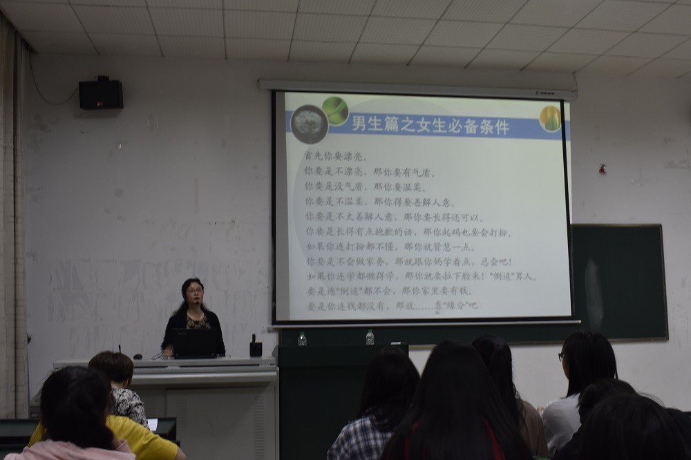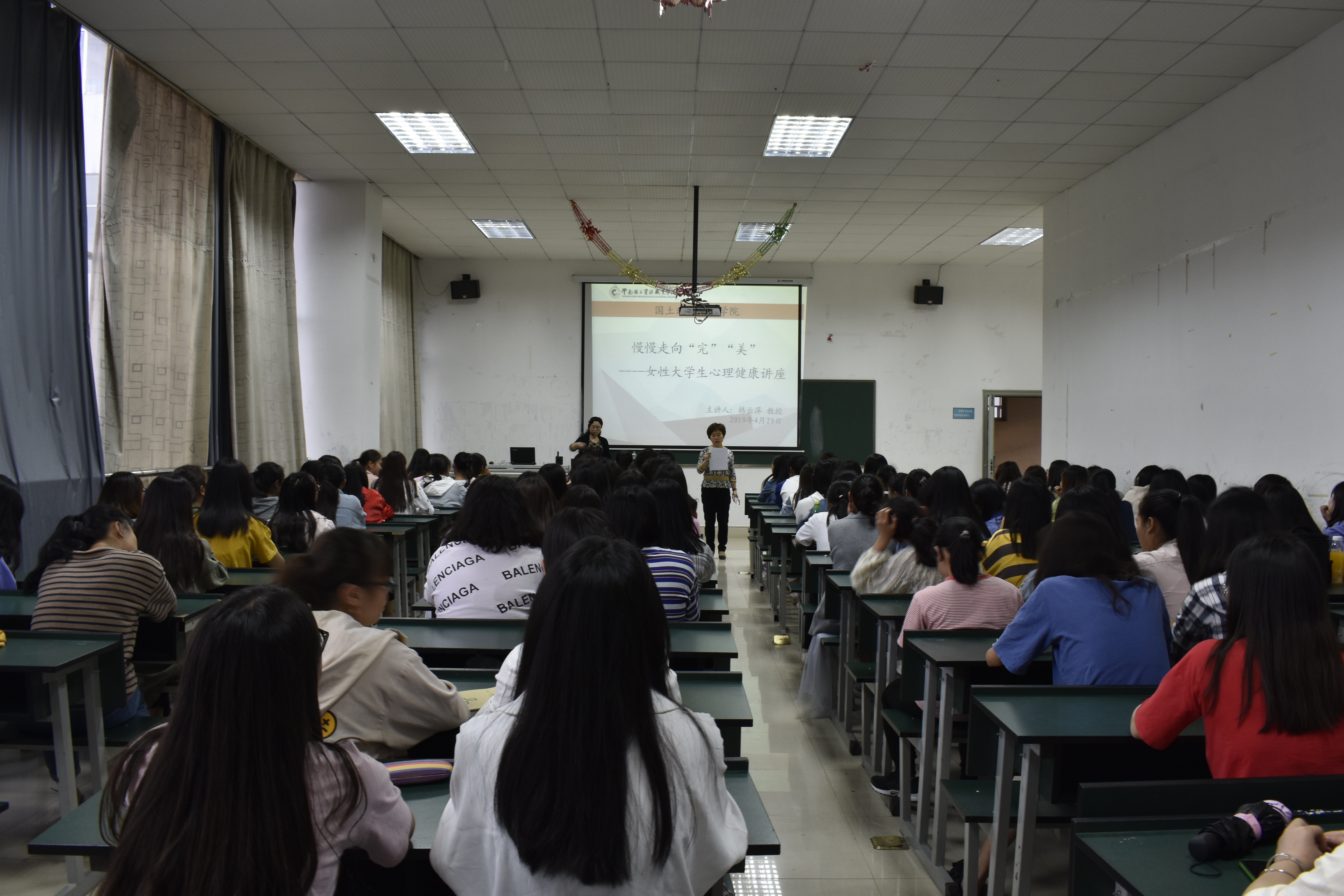 为了提升公司女老员工心理健康意识,同时增进同学之间的人际交往能力。国土太阳成集团tyc122ccvip于4月29日在经开校区205教室举办了题为“慢慢走向‘完’美”的心理健康讲座,公司特邀请到云南省教育厅专家库专家、太阳成集团tyc122ccvip学术委员会委员韩云萍教授作为此次专题讲座的主讲嘉宾,本次讲座由建工公司党总支书记高昆老师主持,辅导员霍冬芳老师及18级全体女生参加。