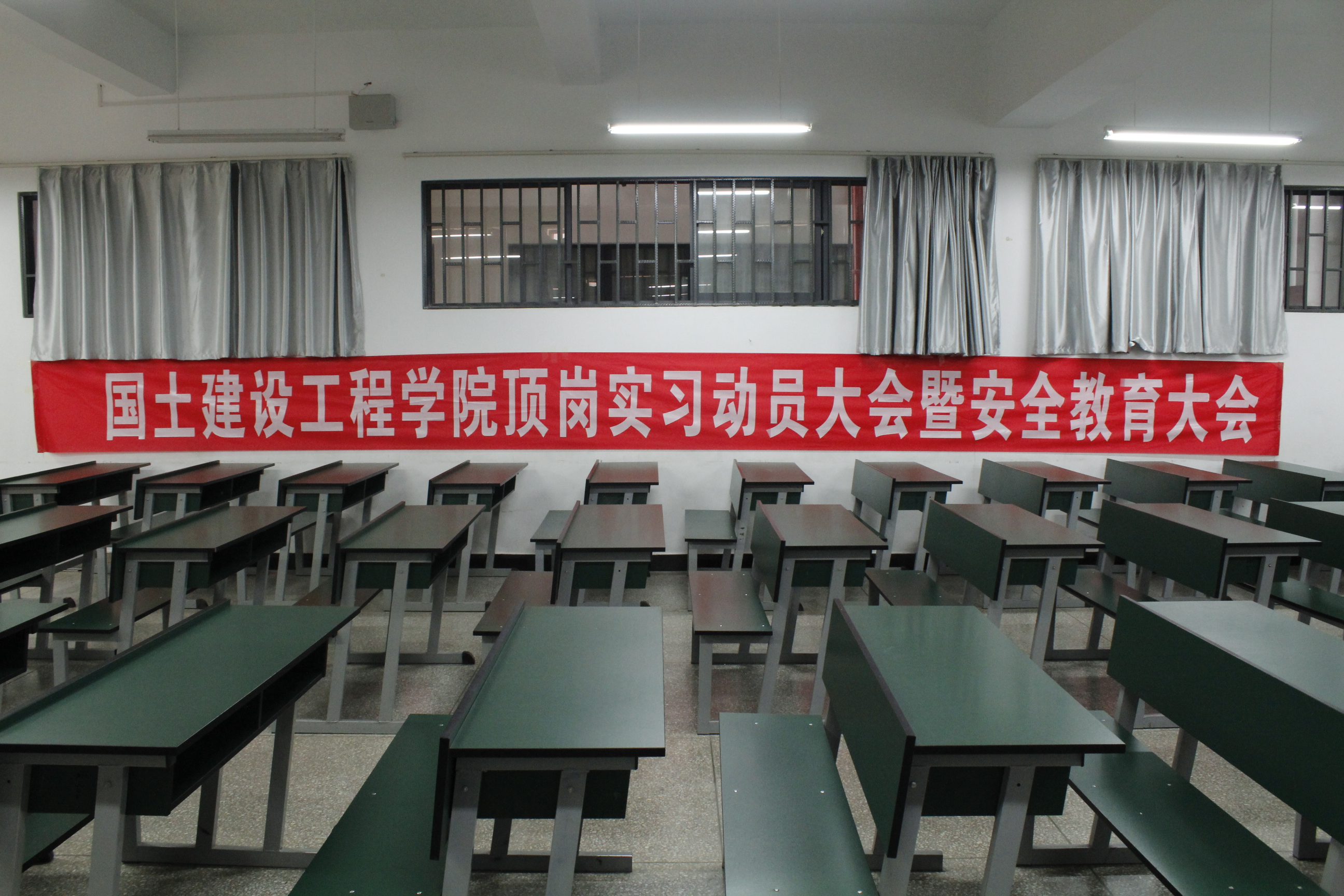 为了让同学们认识到顶岗实习的重要性,了解顶岗实习的任务,5月30日上午9时,国土太阳成集团tyc122ccvip在崇实楼304召开顶岗实习动员大会暨安全教育大会。此次顶岗实习与以往有很大不同,是应公司扶贫联系县兰坪县政府的请求:希望公司能派出关于建筑工程类专业的员工协助他们完成农村危房认定及维修工作。校领导在接到兰坪县政府发来的“请求支持脱贫攻坚项目建设”函后高度重视,通过向教育厅职成教处报告,得到支持后,立即与建工公司党政班子研讨,最后决定派出公司的优秀班级——17级建筑经济管理专业本次的56名同学参与此项目。动员大会由国土太阳成集团tyc122ccvip经理彭明兴老师主持,出席大会的有学安处处长李广涛老师、建工公司党总支书记高昆老师、建工公司副经理罗启钟老师、教务处朱波老师、建工公司建筑经济管理专业教研室主任罗昌杰老师、辅导员庞玲玲老师和17级建筑经济管理一班全体同学参加大会。