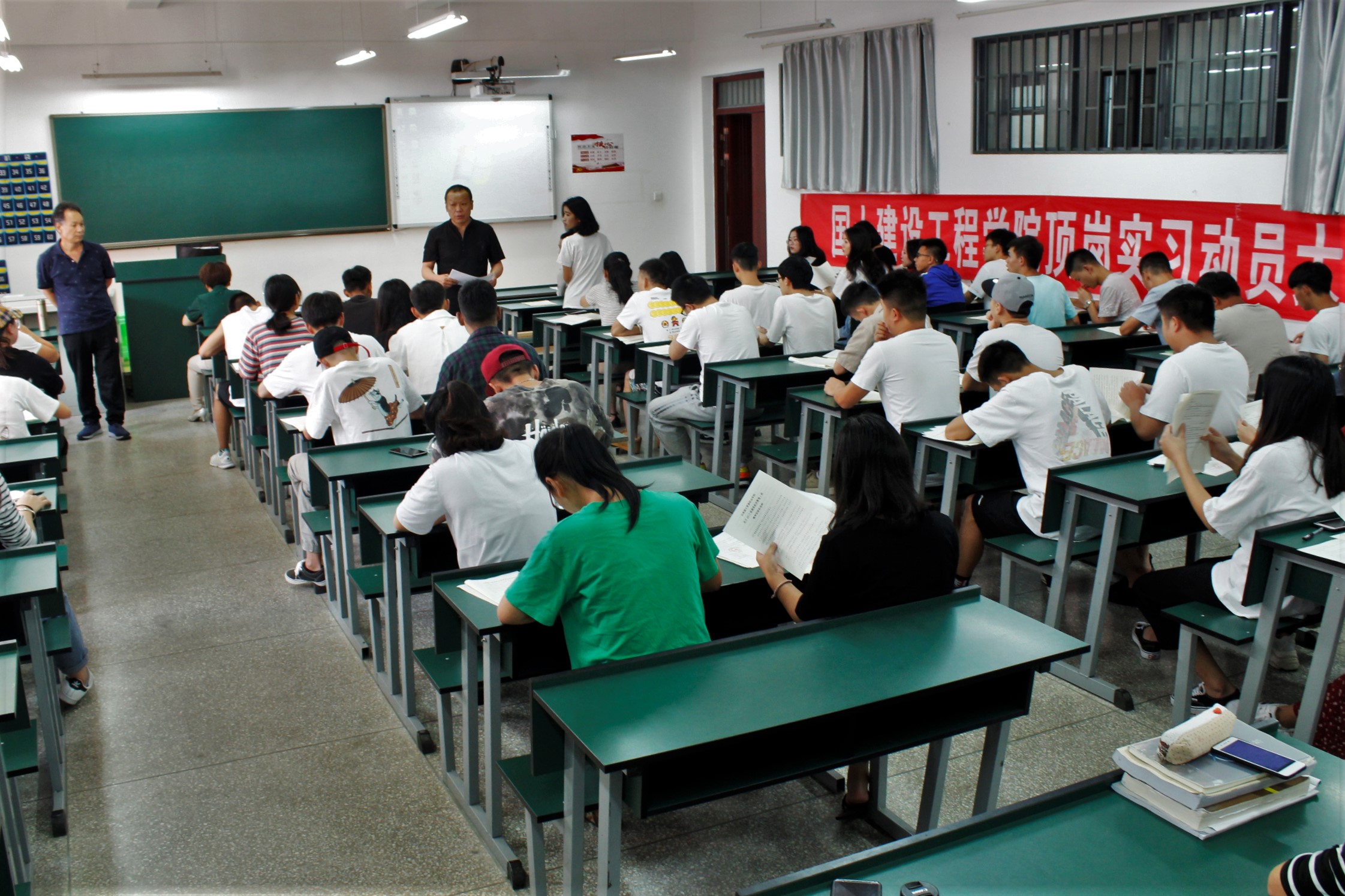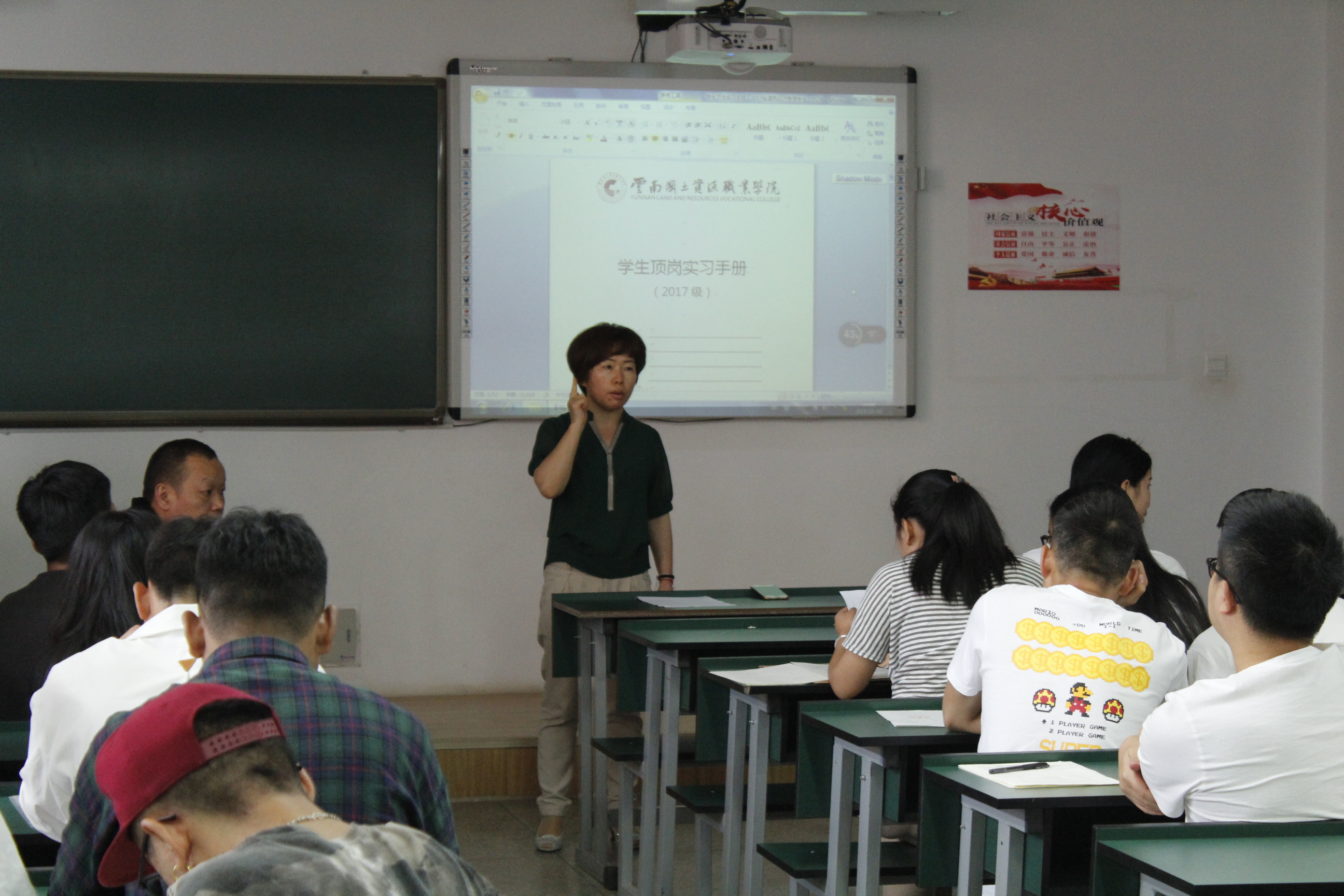 首先,彭老师对全部同学进行到场确认,并重点指出入党积极分子、员工会干部、班委要起到模范带头作用;紧接着,朱老师为同学们讲解此次实习的注意事项,主要包括蘑菇钉使用办法、周记记录、签到定位的要求、签订顶岗实习相关协议等内容进行了全面的解释,确保每位同学正常有序地完成此次顶岗实习。
