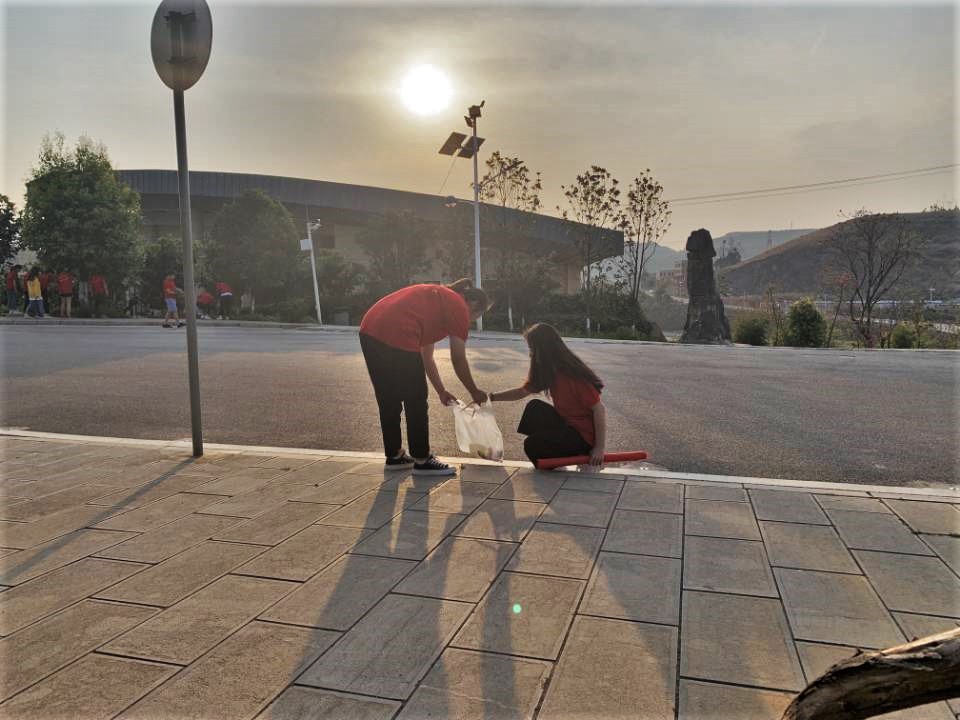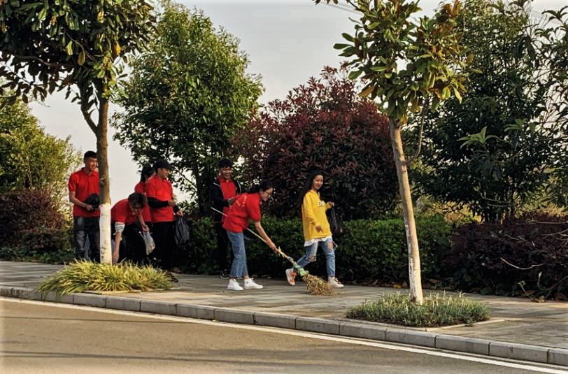 活动中,员工干部们有条不紊地开展清扫工作,他们分工合理,积极配合,一道道红色的身影穿梭在观山楼、勘物楼和员工活动中心周围,途经之处的垃圾都被一扫而光,经过一个多小时的努力,校园焕然一新。