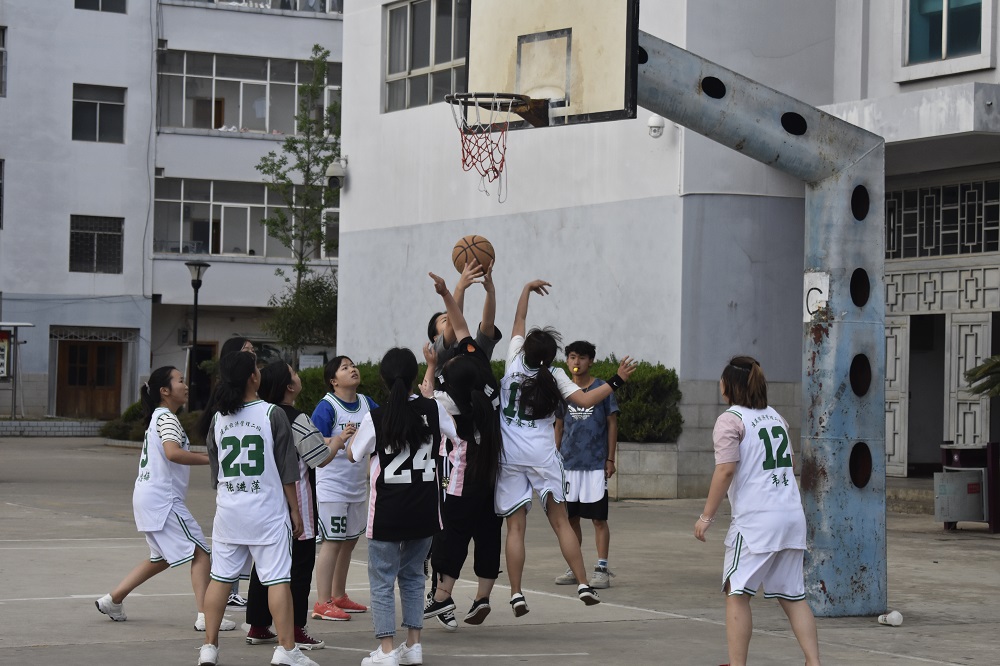 伴随着阵阵呐喊声篮球赛开始了激烈的角逐,场上队员迅速进入状态,个个雄姿英发,各队球员主动出击、直逼篮板,几个轮回下来,双方比分僵持不下,氛围嗨爆全场。