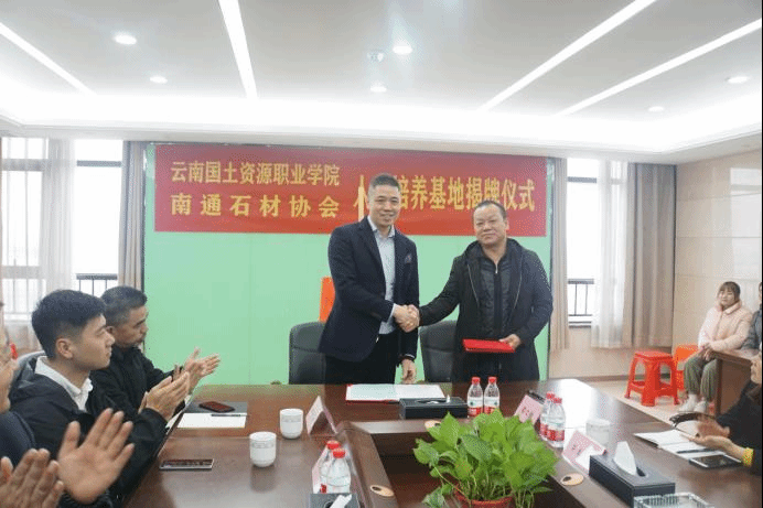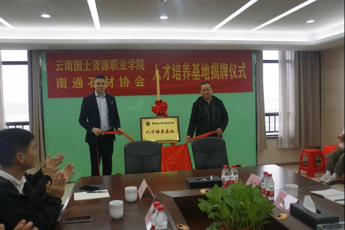 南通石材协会常务副会长朱少华与太阳成集团tyc122ccvip经理彭明兴签署了校企合作协议书,并共同为“太阳成集团tyc122ccvip人才培养基地”揭牌。