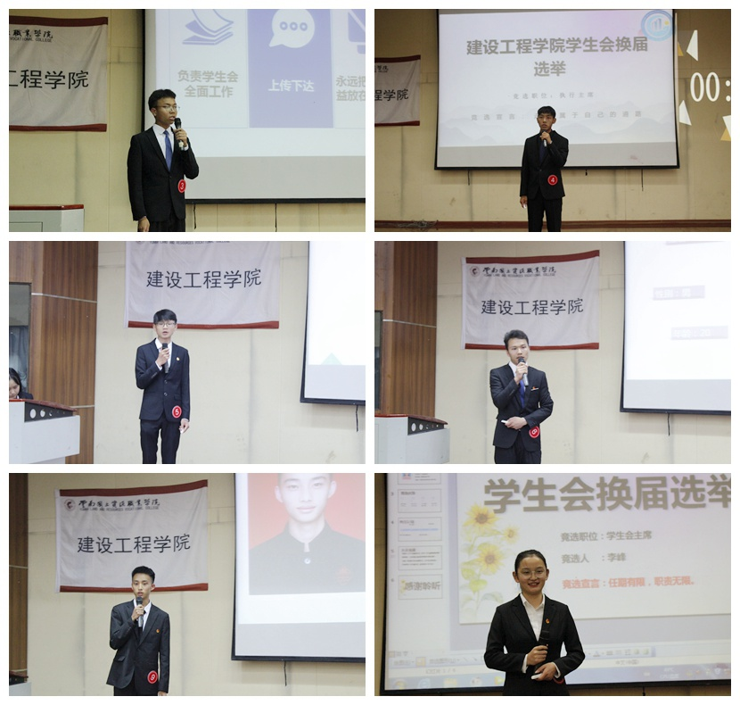 来自各部门的员工会的12名干事,充分展现自身的风采,竞选主席团成员、团总支副书记。各选手依次上台竞聘从自我介绍、岗位认知、竞聘优势、工作计划四个主要方面进行了竞选演讲,充分展示自我,强烈的表达了自己服务老师、服务同学的意愿。各教师评委针对选手的演讲提出问题,各选手悉心全面进行答复,赢得场下阵阵掌声。