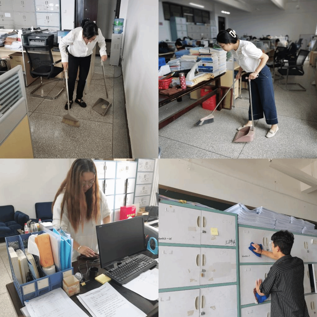 活动过程中,在支部书记林志强同志的带领下,各位党员分别对教师办公室、实训教室、公司风貌展示墙等不同区域进行的安全检查及卫生打扫,及时发现是否存在安全隐患,尤其是BIM机房实训教室,同时检查机房内电脑的使用状况,及时解决问题。大家相互合作,认真、细致的打扫每个角落,确保卫生不留死角。