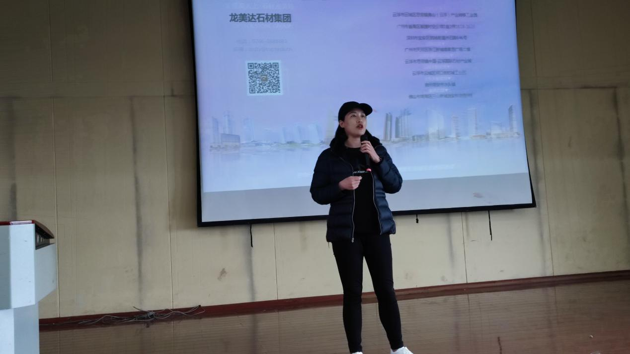 接着,广东龙美达石业有限公司总经理方俊湘、云浮市司徒氏石业有限责任公司总经理司徒玉婷从企业核心价值观、企业使命、企业愿景、企业定位、人才战略、经营理念等几个方面对各自公司展开介绍,并向参加此次校园宣讲会的各位同学抛出橄榄枝,诚邀“新石材人”共创“新石代”。