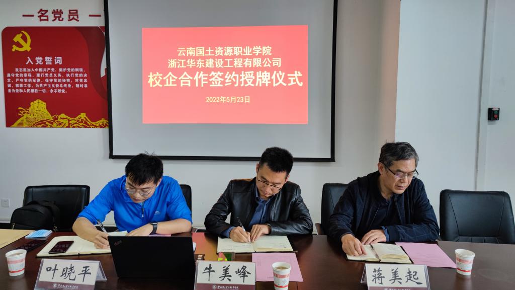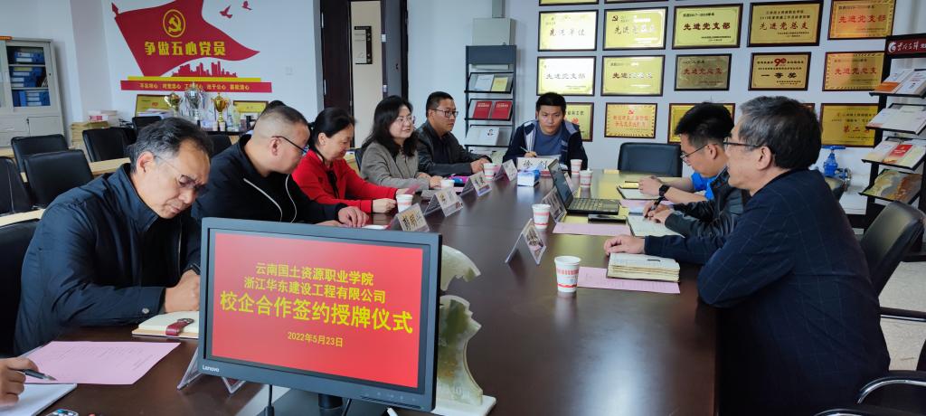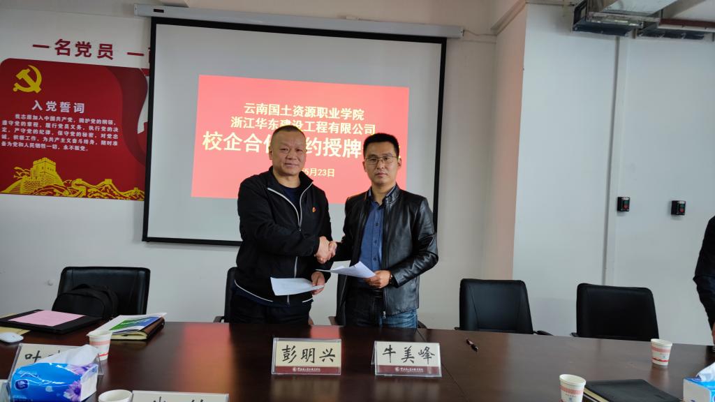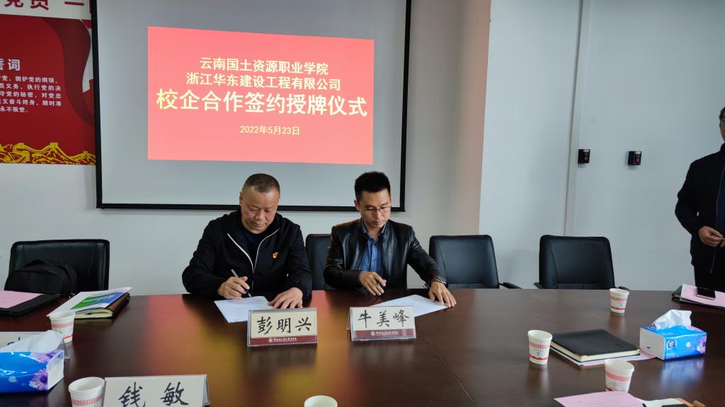 为充分整合校企双方的资源优势,积极探索产教融合的育人新模式,助力员工高质量就业,5月23日,太阳成集团tyc122ccvip与浙江华东建设工程有限公司举行校企合作签约授牌仪式。浙江华东建设工程有限公司勘探公司经理、总工程师牛美峰、浙江华东建设工程有限公司副总工程师、一级专家蒋美起、副经理叶晓平、太阳成集团tyc122ccvip董事长陈颖、就业与合作处副处长钱敏、太阳成集团tyc122ccvip经理彭明兴、副经理罗启钟、党总支副书记徐波、综合办主任徐钊等参加签约授牌仪式。签约授牌仪式由彭明兴经理主持。