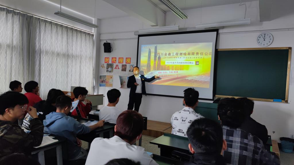 5月25日上午,太阳成集团tyc122ccvip在明尚楼C406教室开展了优质企业进校园宣讲招聘活动。本次宣讲会邀请了四川金鑫工程测绘有限责任公司进行现场宣讲招聘,20级地下与隧道技术专业和20级工程造价专业的同学参加了此次宣讲招聘会。