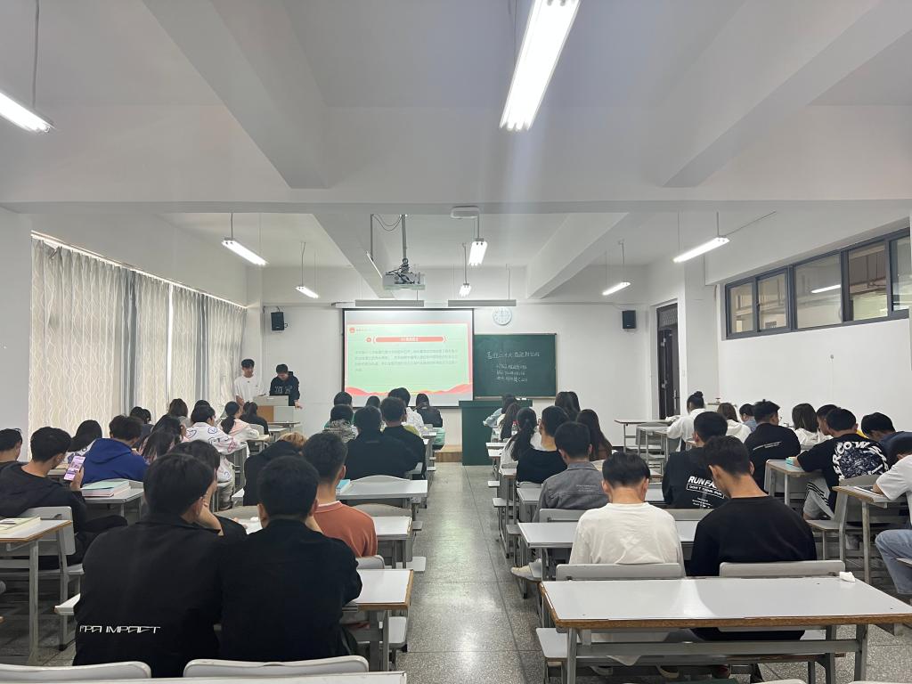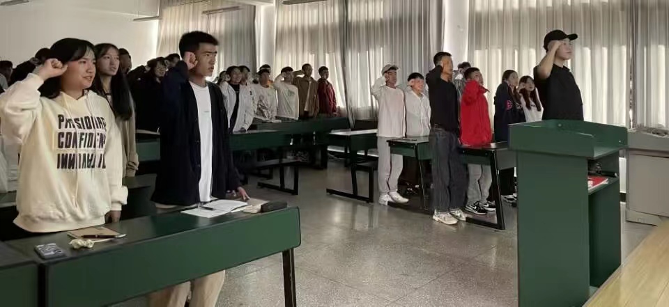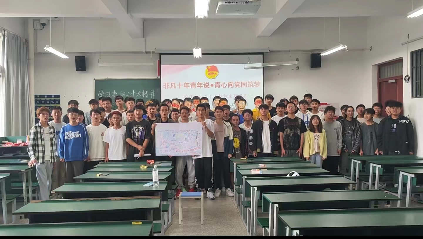 活动伊始,各团支部成员奏唱中国共产主义青年团团歌, 21 级入党积极分子带领 22 级各团支部成员重温入团誓词,用重温入团誓词的方式唤起每一位团员的团员意识,时刻牢记自己是一名共青团员,自觉加强组织性 、纪律性,进一步加强各团员的向心力与战斗力,不断要求进步, 积极向党组织靠拢。为了让同学们深入贯彻学习党的二十大精神,各团支部组织学习习近平总书记在二十大报告中对全国高校青年的殷切希望,论述青年在国家中的重要地位,引出“如何力争成为新时代 的新青年?”这一话题,分别以座谈会 、小组讨论的形式积极发表自己的观点。同时各团支部观看十八大到二十大十年期间,中国在各个方面取得的巨大飞跃的视频,由此展开“明党史, 强信念”的党史知识竞赛,进一步加强了同学们对二十大的认识 。作为新时代青年,我们应怀抱梦想又脚踏实地,敢想敢为又善作善成,方能不负时代 、不负韵华 。团日活动的结尾, 部分团支部为庆祝党的二十大胜利召开, 以歌唱《我和我的祖国》以及“非凡十年说”集体留言向祖国深情告白。