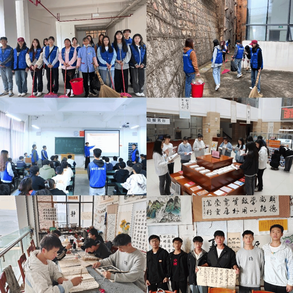 美育活动:有意识地引导同学们从寝室走进自然,从手机走向艺术,在艺术的世界里寻找至真善美的心灵,以书法小组,舞蹈小组,美术小组三个小组分别开展活动。使自己的特长得以发挥,让大学变得更加自信。