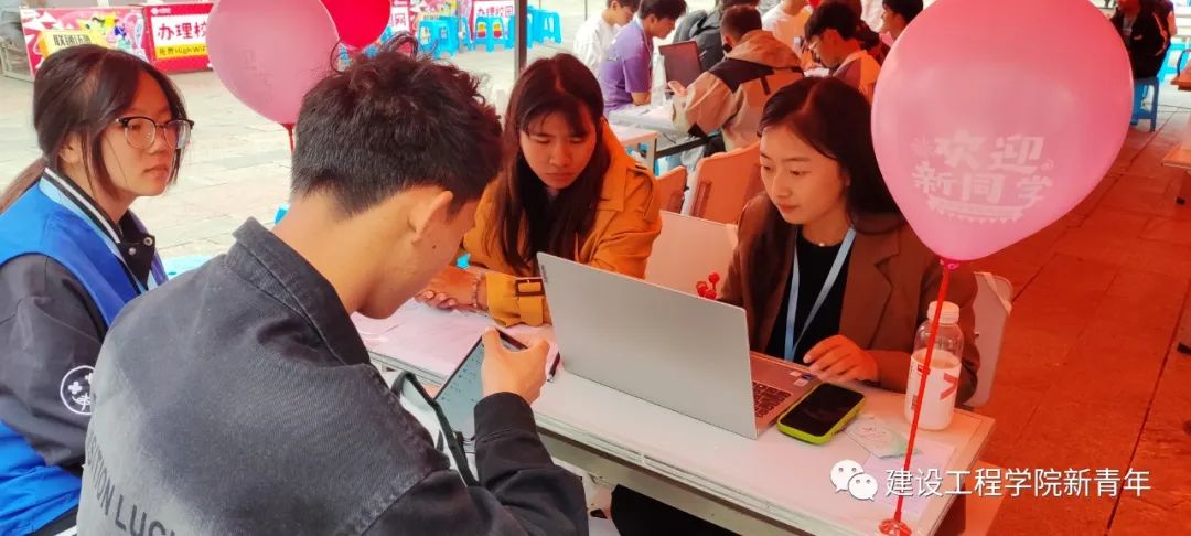 新生辅导员、班主任、班主任助理一直坚守在迎新现场,他们通力合作、齐心协力,确保了迎新工作顺利推进。
