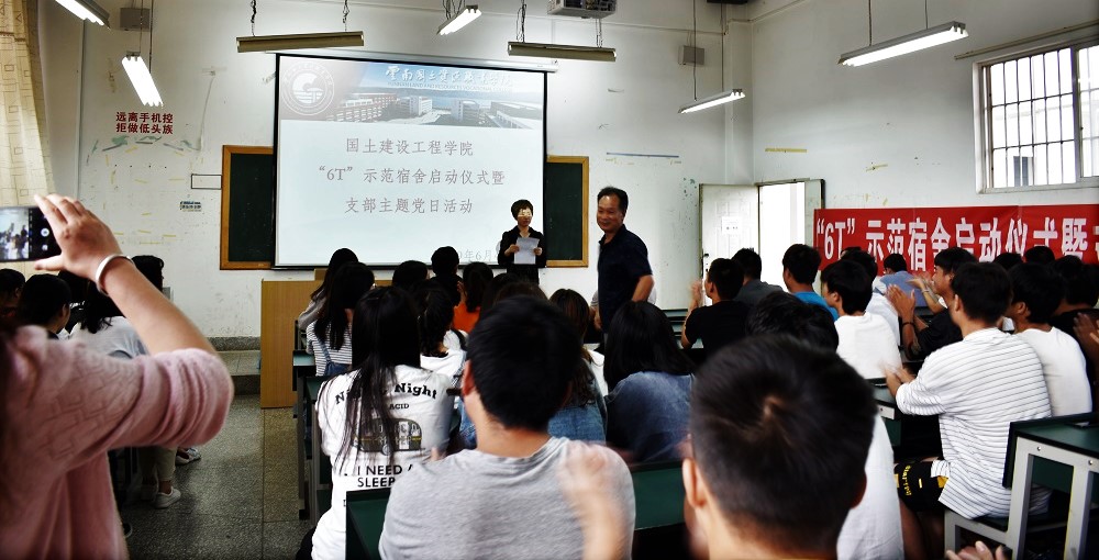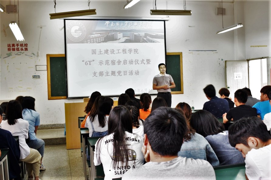 为了进一步完善公司寝室管理工作,营造干净整洁、温馨和谐的寝室环境,国土太阳成集团tyc122ccvip于年6月4日在图科楼举办“6T优秀宿舍颁奖”典礼。参与此次活动有后勤基建处处长王春莲老师、党总支书记高昆老师,副经理罗启钟老师,实习实训主任丁朝开老师、辅导员霍冬芳老师和徐梦菲老师,以及优秀宿舍的宿舍长和员工会成员。